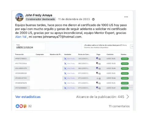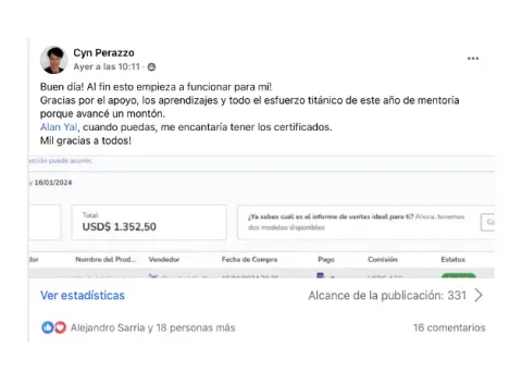 Para que comprendas cómo este programa te llevará de la mano a que generes tus primeras ventas y logres generar una constancia en tus resultados, cómo ya lo han hecho muchos de nuestros estudiantes.